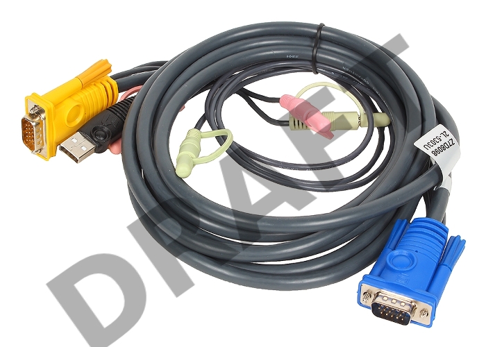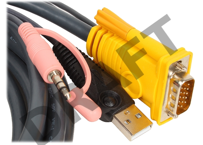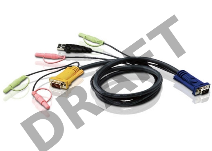 Кабель ATEN KVM Cable 2L-5303U Кабель для KVM: USB(Am)+DB15(m)+2*Audio (PC) -на- SPHD15(m)+2*Audio (KVM), 3м