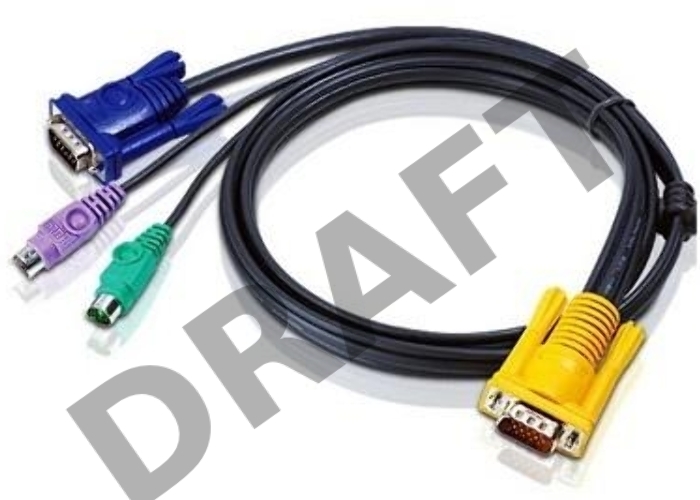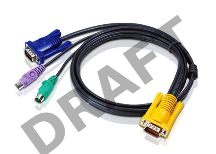 Шнур, мон+клав+мышь PS/2, SPHD15=>HD DB15+2x6MINI-DIN ATEN (2L-5202P) Male-3xMale, 8+6+6 проводов, опрессованный, 1.8 метр., черный