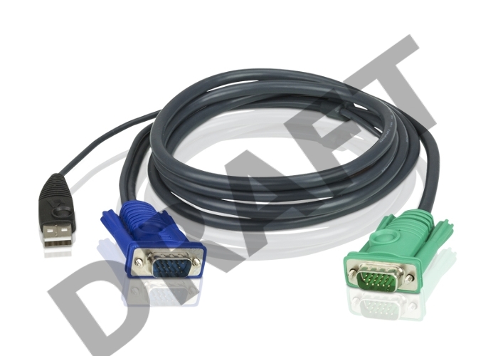 Шнур, мон+клав+мышь USB ATEN, SPHD15=>HD DB15+USB A-Тип, Male-2xMale, 8+4 проводов, опрессованный, 1.8 метр., черный, (2L-5202U)