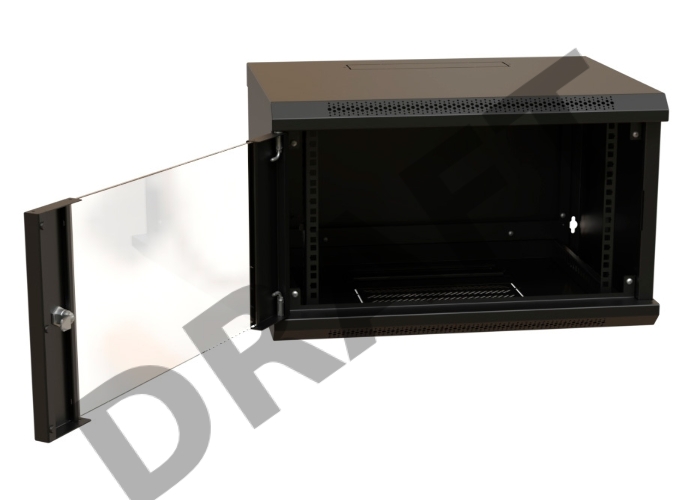 Шкаф коммутационный WRline (WR-TW-0945-GP-RAL9004) настенный 9U 600x450мм пер.дв.стекл 2 бок.пан. 60кг черный 370мм 500мм IP20 сталь