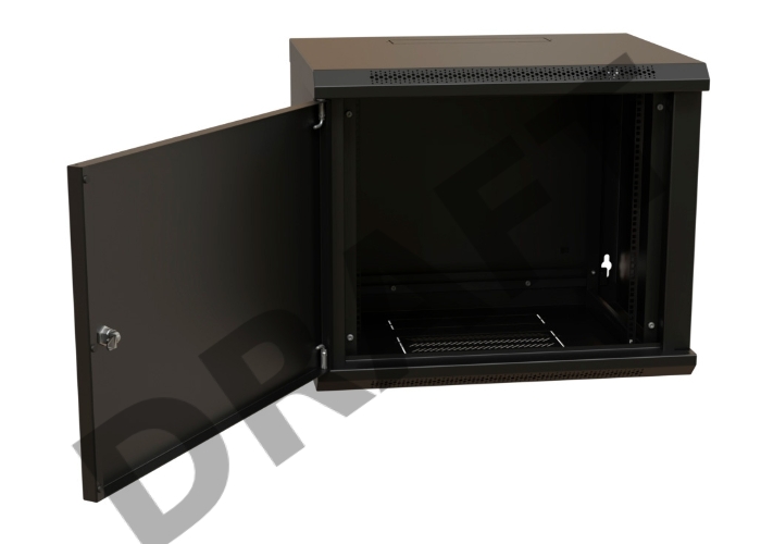 Шкаф коммутационный WRline (WR-TW-1245-SR-RAL9004) настенный 12U 600x450мм пер.дв.металл 2 бок.пан. 60кг черный 370мм 650мм IP20 сталь