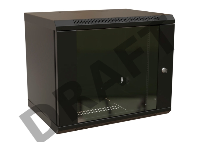 Шкаф коммутационный WRline (WR-TW-1545-GP-RAL9004) настенный 15U 600x450мм пер.дв.стекл 2 бок.пан. 60кг черный 370мм 775мм IP20 сталь
