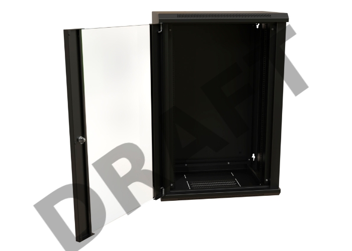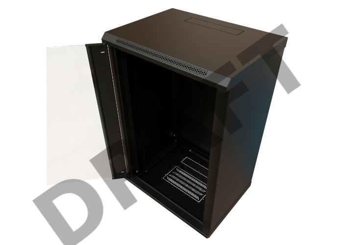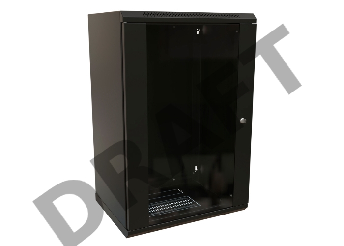 Шкаф коммутационный WRline (WR-TW-1845-GP-RAL9004) настенный 18U 600x450мм пер.дв.стекл 2 бок.пан. 60кг черный 370мм 908мм IP20 сталь