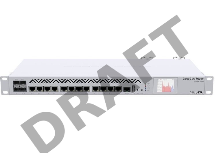 Маршрутизатор Mikrotik CCR1036-12G-4S-EM Cloud Core Router 1036-12G-4S with Tilera Tile-Gx36 CPU (36-cores, 1.2Ghz per core), 16GB RAM, 4xSFP cage, 12xGbit LAN, RouterOS L6, 1U rackmount case, PSU, LCD panel