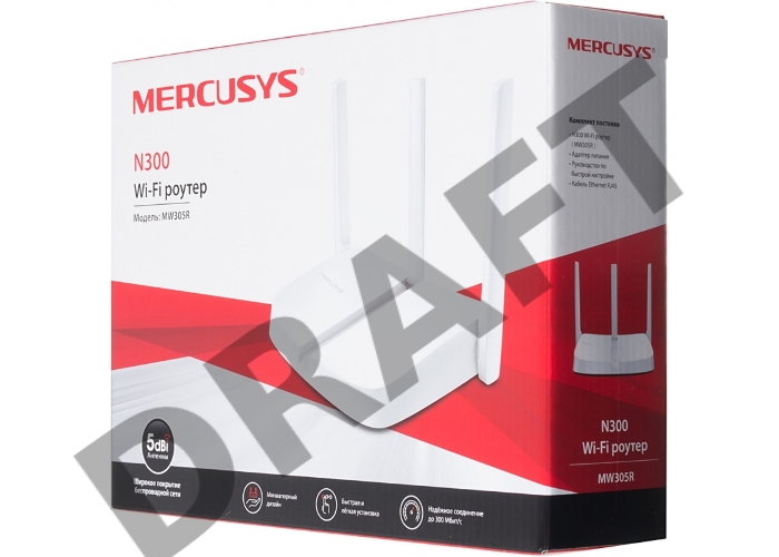 Маршрутизатор Mercusys MW305R Wi-Fi роутер 300 Мбит/с 2,4 ГГц, 1 порт WAN 10/100 Мбит/с + 4 порта LAN 10/100 Мбит/с, 2 фиксированные антенны