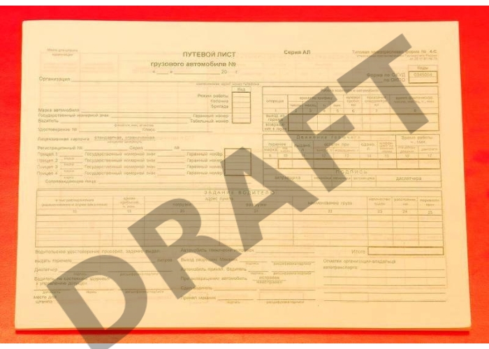 Путевой лист грузового автомобиля А4 200 листов/упаковка
