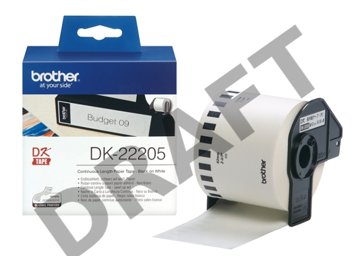Бумажная клеящаяся лента Brother DK22205 (белая, ширина 62 мм x 30.48 м)