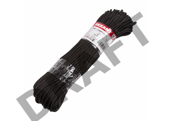 Шнур с сердечником 7 мм 50 м черный REXANT