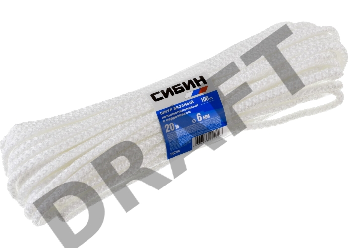 Шнур вязаный полипропиленовый СИБИН с сердечником, белый, длина 20 метров, диаметр 6 мм