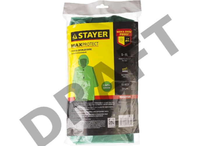Плащ-дождевик STAYER "MASTER", материал - полиэтилен, универсальный размер, зеленый цвет [11610]