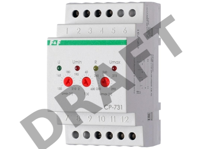 Реле напряжения CP-731 (трехфазный; микропроцессорный; контроль верхнего и нижнего значений напряжения; контроль ассиметрии; чередования фаз; монтаж на DIN-рейке 35мм 3х400/230+N 2х8А 1Z 1R IP20) F&F EA04.009.005