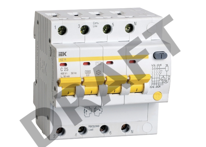 Диф.автомат Iek MAD10-4-025-C-030 АД14 4Р 25А 30мА ИЭК