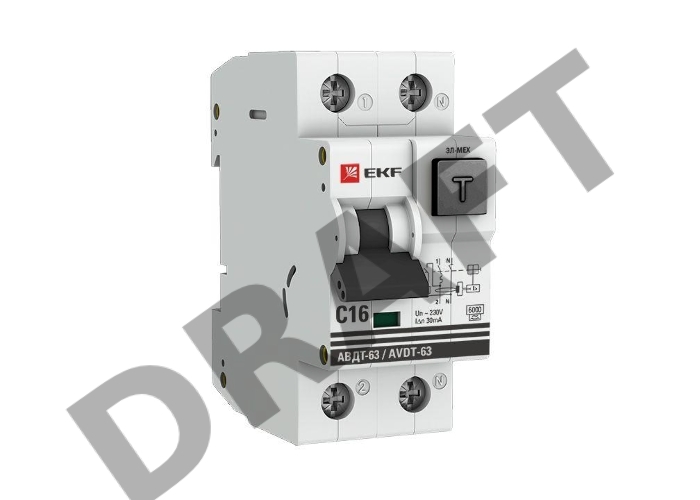 Дифференциальный автомат АВДТ-63 EKF DA63-16-30 16А/30мА (характеристика C, эл-мех тип A) 6кА EKF PROxima