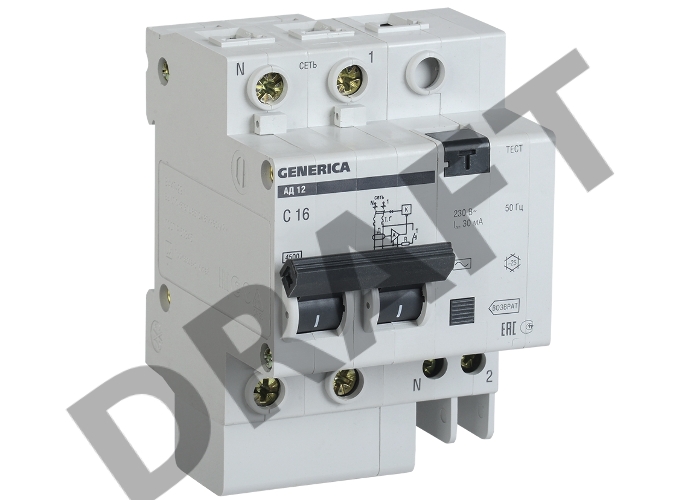 Выключатель автоматический дифференциального тока 2п 10А 30мА АД12 GENERICA ИЭК MAD15-2-010-C-030