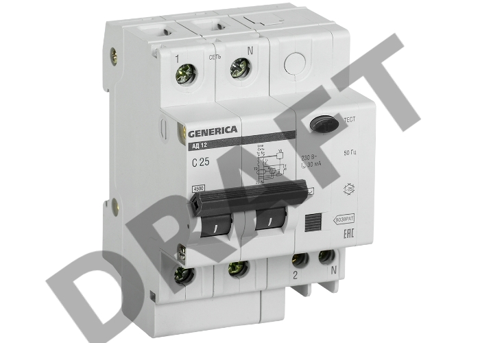 Выключатель автоматический дифференциального тока 2п 25А 30мА АД12 GENERICA ИЭК MAD15-2-025-C-030