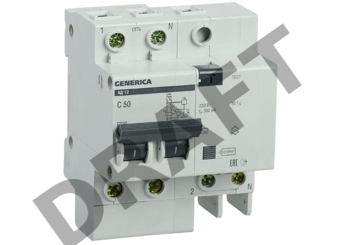 Выключатель автоматический дифференциального тока 2п 50А 300мА АД12 GENERICA ИЭК MAD15-2-050-C-300