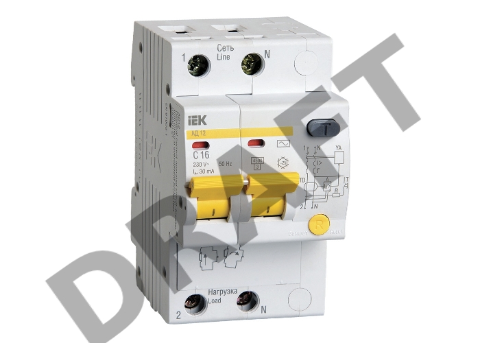 Выключатель автоматический дифференциального тока ИЭК 2п 16А/30мА АД-12 MAD10-2-016-C-030 (5)