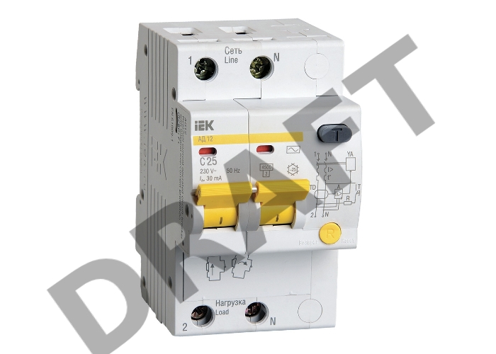 Выключатель автоматический дифференциального тока ИЭК 2п 25А/30мА АД-12 MAD10-2-025-C-030