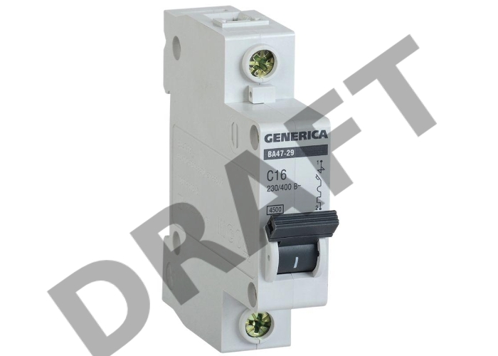 Авт. выкл. Iek MVA25-1-016-C ВА47-29 1Р 16А 4,5кА х-ка С GENERICA