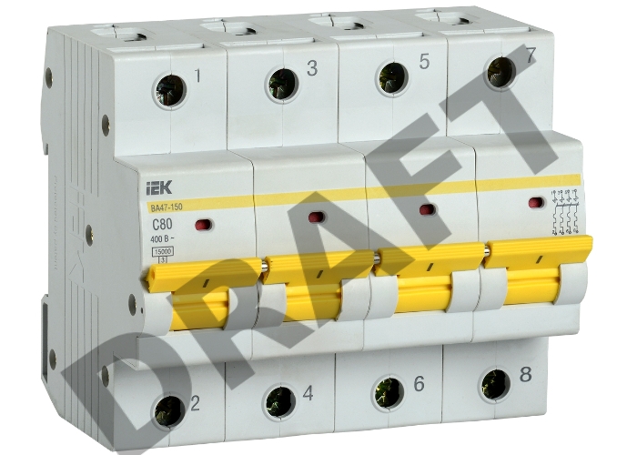 Автоматический выключатель IEK KARAT ВА47-150 4Р 80А 15кА характеристика C