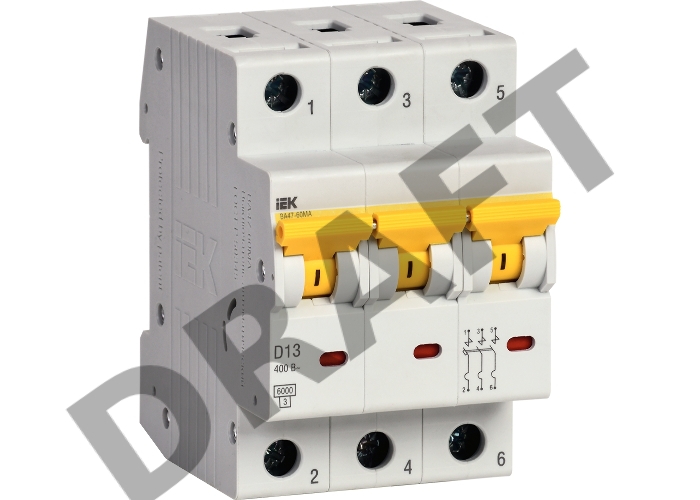 Автоматический выключатель IEK ВА47-60МА без тепл. расцеп. 3P 13А 6кА D