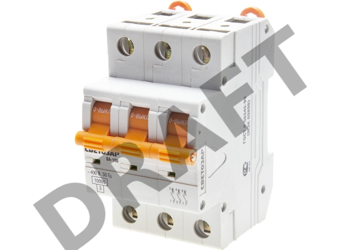 Выключатель автоматический СВЕТОЗАР 3-полюсный, 50 A, "C", откл. сп. 10 кА, 400 В