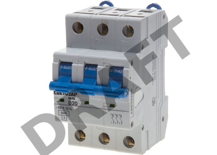 Выключатель автоматический СВЕТОЗАР 3-полюсный, 63 A, "B",откл. сп. 6 кА, 400 В