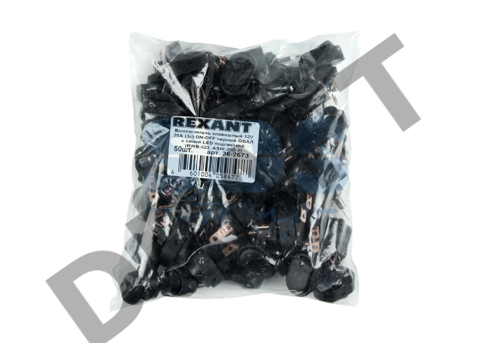 Выключатель клавишный 12V 20А (3с) ON-OFF черный ОВАЛ с зеленой LED подсветкой REXANT
