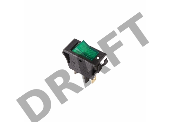 Выключатель клавишный 250V 15А (3с) ON-OFF зеленый с подсветкой REXANT