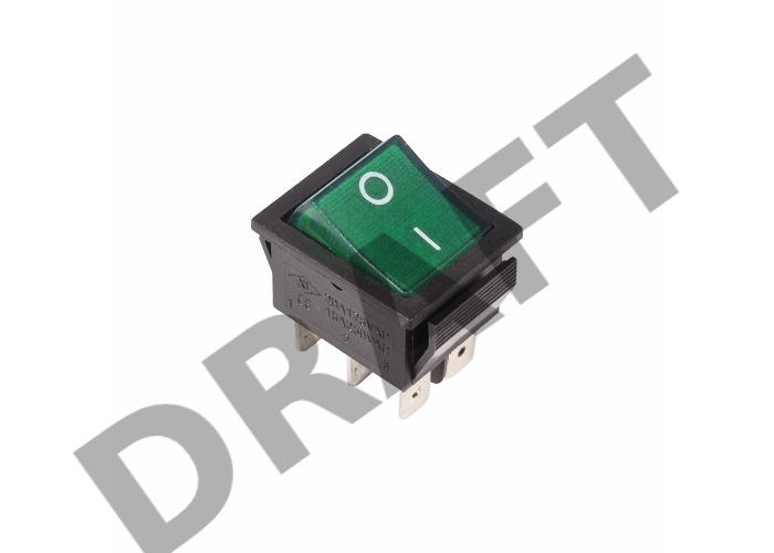 Выключатель клавишный 250V 15А (6с) ON-ON зеленый с подсветкой REXANT