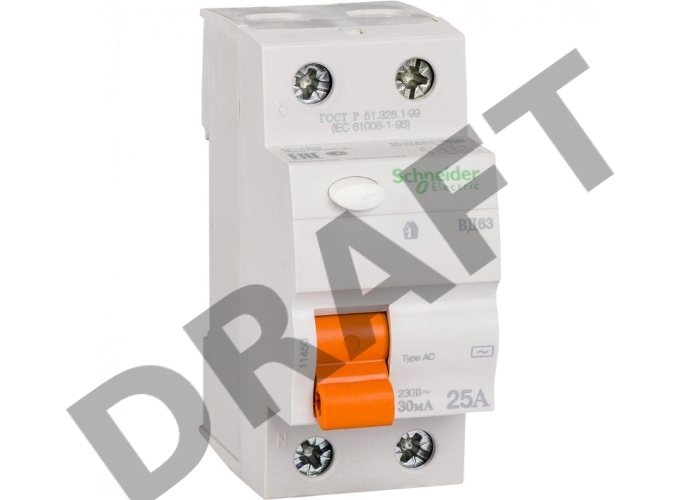 Выключатель дифференциального тока (УЗО) 2п 25А 30мА тип AC ВД63 Домовой SchE 11450