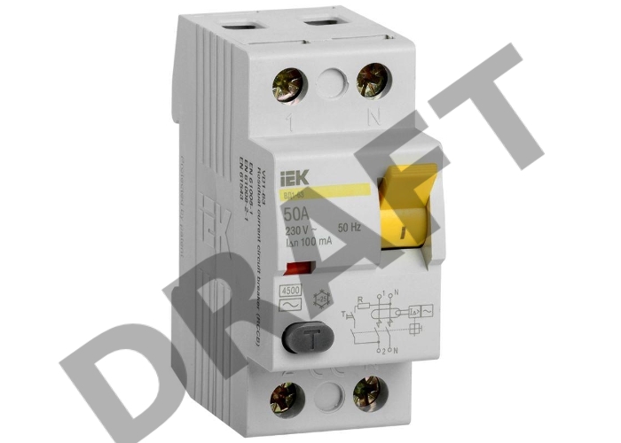 Выключатель дифференциального тока (УЗО) 2п 50А 100мА тип AC ВД1-63 ИЭК MDV10-2-050-100