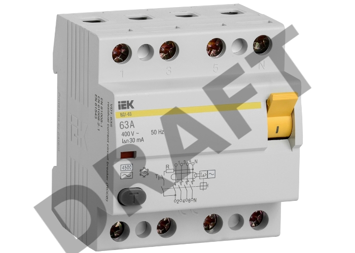 Выключатель дифференциального тока (УЗО) 4п 63А 30мА тип AC ВД1-63 ИЭК MDV10-4-063-030