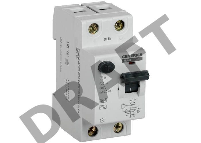 Выключатель дифференциального тока УЗО Iek MDV15-2-032-030 ВД1-63 2Р 32А 30мА GENERICA