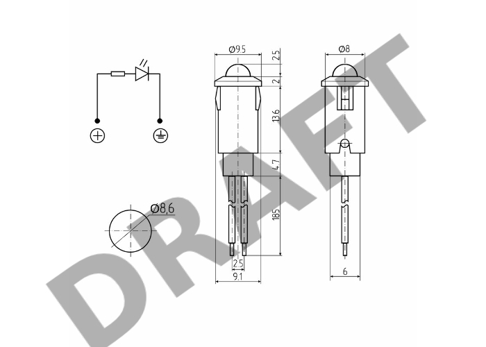 Индикатор Ø8 12В с проводом красный LED REXANT