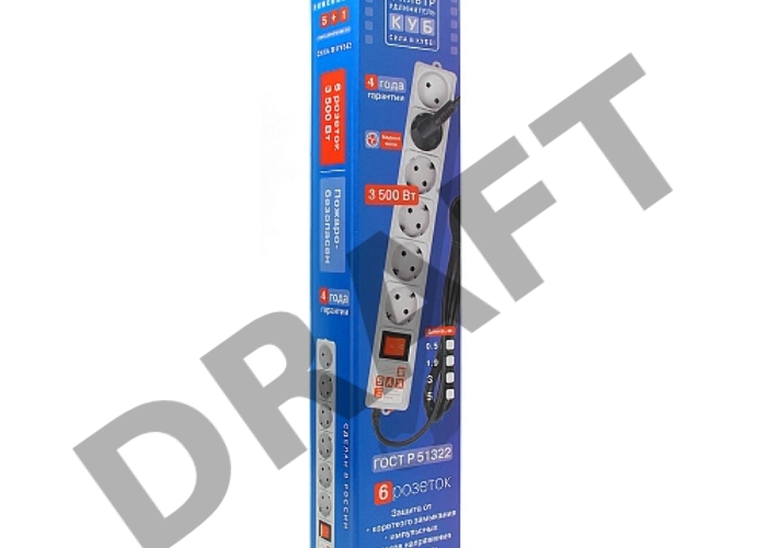 Фильтр-удлинитель Power Cube 0,5 м 6 розеток (белый) 16А/3,5кВт