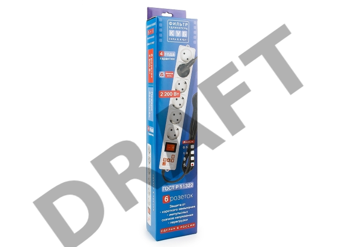 Фильтр-удлинитель Power Cube 5,0 м 6 розеток (серый) 10А/2,2кВт