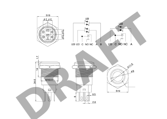 Кнопка антивандальная Ø16 250В Б/Фикс (5с) (ON)-OFF плоская подсв/красная POWER REXANT