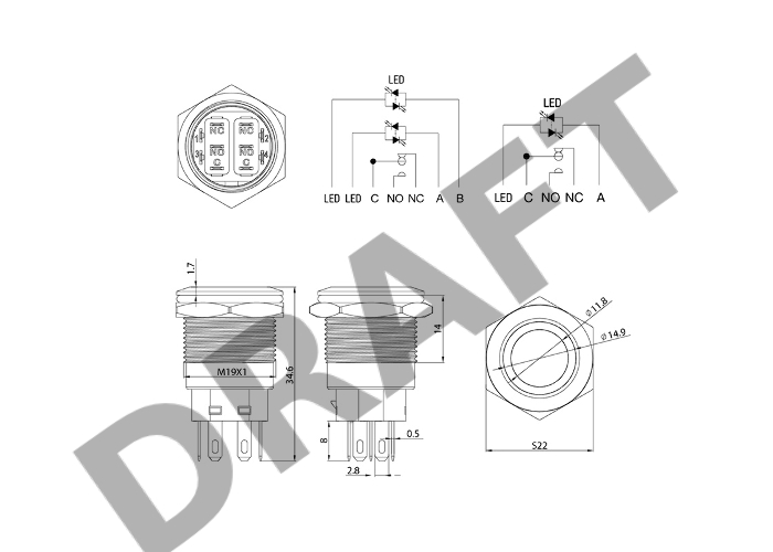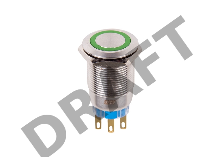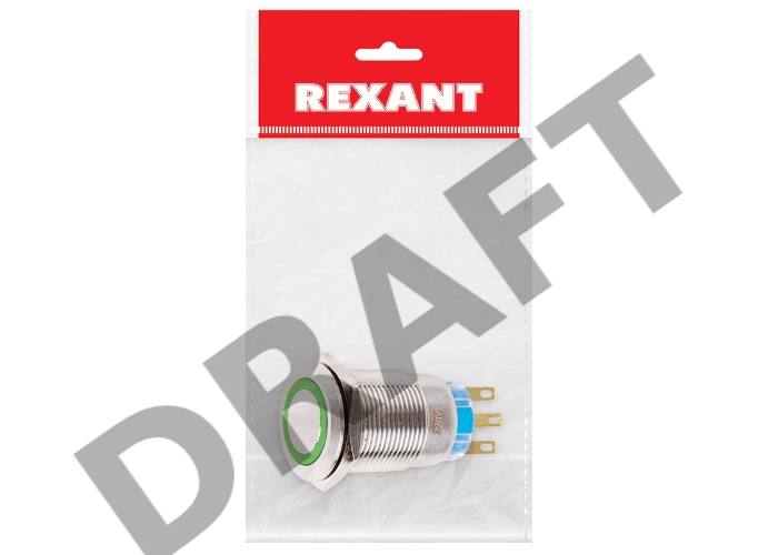 Кнопка антивандальная Ø19 250В Фикс (5с) ON-OFF/OFF-ON подсв/зеленая REXANT