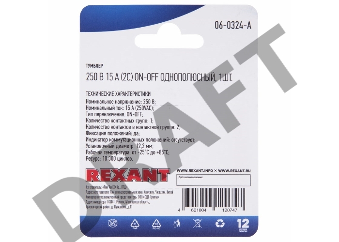 Тумблер 250V 15А (2c) ON-OFF однополюсный (KN-101) REXANT (в упак. 1шт.)