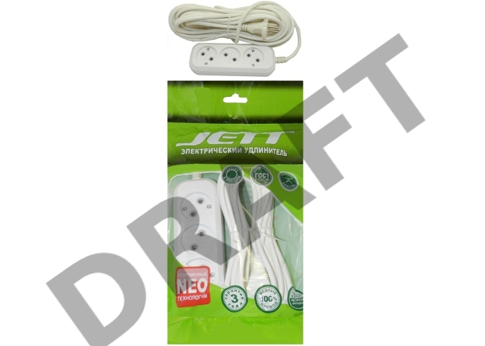 Удлинитель ДЖЕТТ РС-3 без з/м, 3р*5м ( провод ПВС 2х0,75 ) 155-205