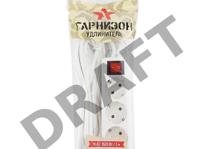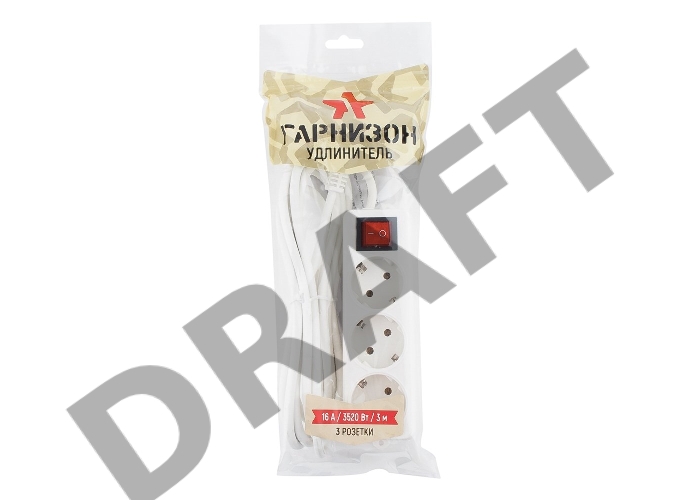 Удлинитель Гарнизон ELB-G3-W-3, 3 евророзетки с выключателем и заземлением, допустимый ток 16А, длина 3м.