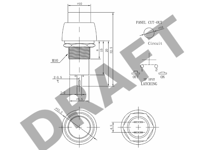 Выключатель-кнопка 250V 1А (2с) (ON)-OFF Б/Фикс желтая Micro REXANT