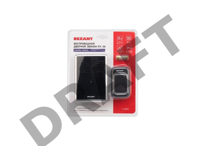 Звонок беспроводной c цифровым кодированием, влагозащищенной кнопкой IP44 и регулировкой громкости RX-30 REXANT