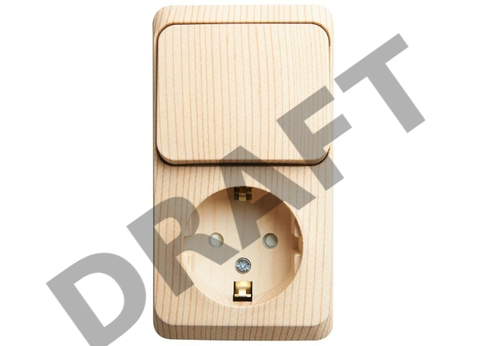 Блок ОП Этюд (1-м розетка с заземл. защ. шторки + 1-кл. выкл.) сосна SchE BPA16-201D