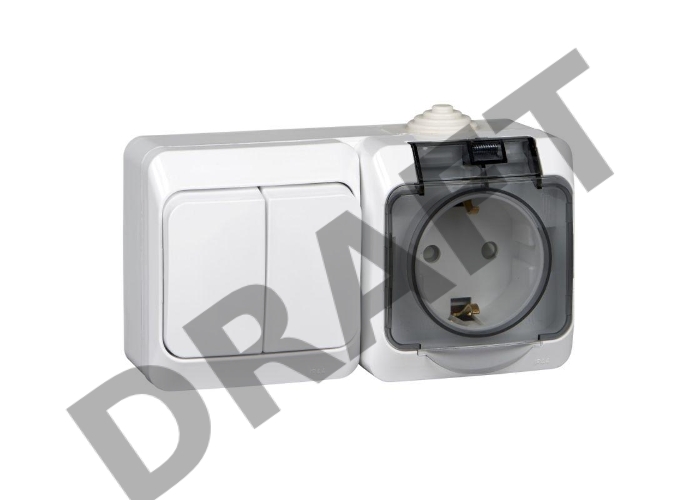 Блок ОП Этюд (2-кл. выкл. + евророз. защ. шторки) IP44 бел. SchE BPA16-242B