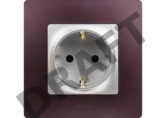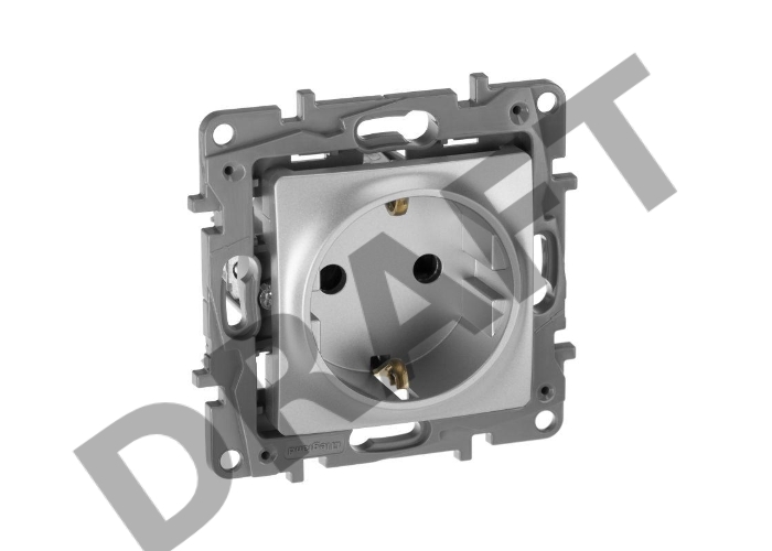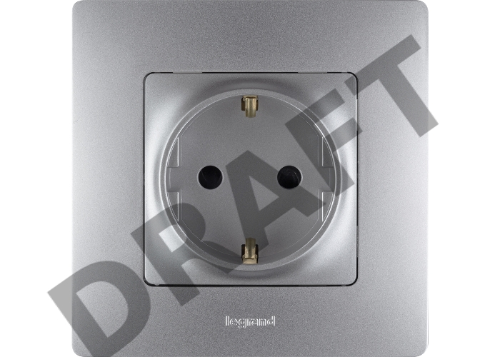 Розетка [672422] Legrand Розетка 2К+З со шторками - немецкий стандарт - винтовые зажимы - 16 А - 250 В - Etika - алюминий