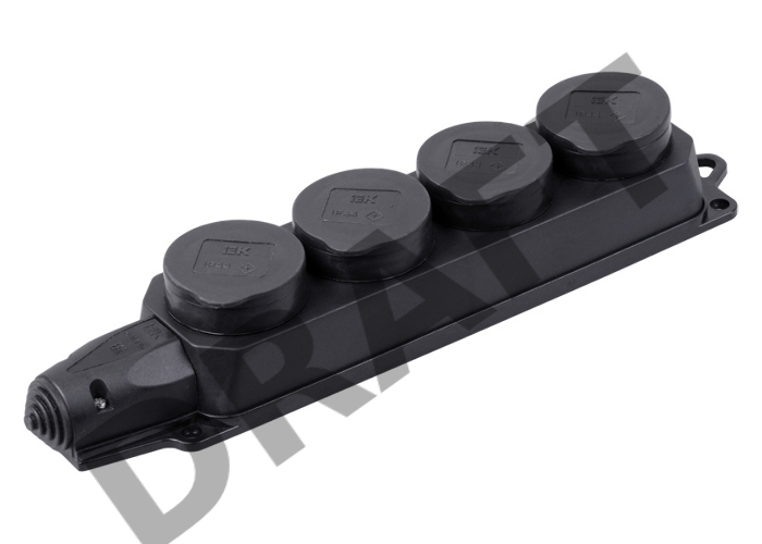 Розетка (колодка) 4-м Омега РБ34-1-0м с защ. крышкой IP44 каучук ИЭК PKR64-016-2-K02
