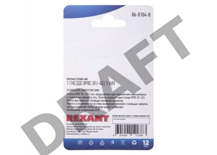 Розетка сетевая LAN, на стену, (1 гнездо 8Р8С (Rj-45), 5e кат)