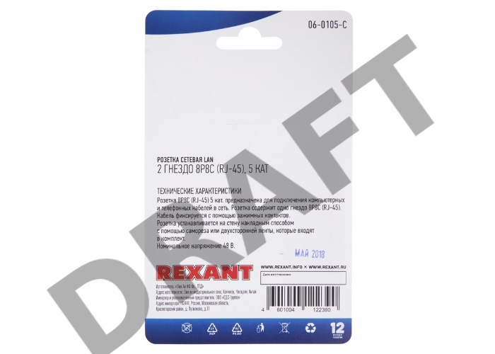 Розетка сетевая LAN, на стену, (2 гнездо 8Р8С (Rj-45), 5e кат)